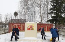 Каты сугышларның тәмамлануына да инде 75 ел вакыт узган. Хәзерге тыныч тормышта бәхетле яшәвебезгә без әби-бабайларыбызга бурычлы. Безнең бурыч ҖИҢҮГӘ үз өлешен керткән барлык халыкларны хөрмәт итү.Безнең мәктәпнең яшь армиячеләре "Һәйкәл" акциясе үткәрделәр. Алар авылыбыз уртасында Бөек Ватан сугышында һәлак булучылар истәлегенә куелган һәйкәл территориясен кардан чистартуда катнашты. -