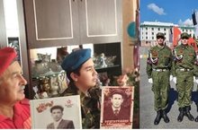 Так же в онлайн Параде Победы принял участие начальник штаба Юнармии –Хуснутдинов И.В. вместе со своим внуком.