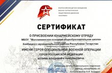 Юнармейскому отряду "МБОУ "Маломеминская ООШ" присвоено имя Героя Российской Федерации Козина Владимира Николаевича.