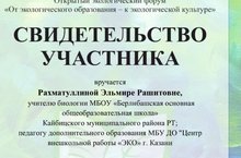 20 апреля 2023 года состоялся ХХIII Открытый экологический форум «От экологического образования – к экологической культуре» где педагоги дополнительного образования принимали участие. За участие в форуме Рахматуллина Э.Р.и Хайрутдинова Г.Р. получили свидетельство участника.