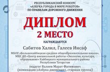 Всестороннее воспитание подрастающего поколения заключается в привлечении их в различные кружки. МБУ ДО ЦВР «ЭКО» по техническому направлению, по виду робототехника участвовали в Республиканском конкурсе «Азбука города в мире роботов» по правилам дорожного движения. Организатором конкурса является ГБУ ДО «РЦВР» конкурс проводился с 25 ноября по 25 декабря 2021г. В заочной форме. В номинации «Азбука движения» -участники представляли маневры движения робота на перекрестке по правилам дорожного движения ( с правой и с левой стороны). Из нашего района участвовали ученики МБУ ДО ЦВР «ЭКО» Сабитов Халил, Галеев Инсаф под Руководством Валиева Марата Фагимовича. Были удостоены диплома второй степени.