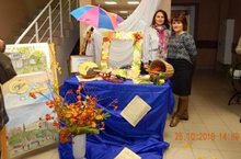 Сегодня в фойе районного Дома культуры была организована выставка из даров осени. Композицию из овощей и фруктов, цветов, выращенных на приусадебных участках, подготовили заведующие клубами, сельские библиотекари. От нашей школы усилиями преподавательского коллектива была организована Фотозона "Осенний этюд" с атрибутами музыкального и художественного искусства. Любой гость и участник выставки мог свободно провести для себя фотосессию на нашей фотозоне.