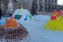 2017 год - год огненного петуха. Сказочные персонажи - неподражаемый яркий петух с рябой наседкой в гнезде встречают всех на территории нашей школы. В середине сказочной композиции расположены музыкальные инструменты, над которыми возвышается музыкальный знак - нота. Сюжет дополняет весёлый деревенский забор. Ну а вечером, с наступлением темноты, раноцветными огоньками загорается нарядная ёлка. Пусть красота,сотворенная руками педагогов, радует учащихся школы и просто создаёт предновогоднее настроение случайным прохожим. (См.Медиатеку).
