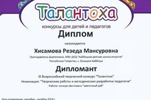 Поздравляем преподавателя отделения фортепиано Хисамову Р.М. и её учащихся, которые приняли участие и завоевали призовые места в IХ и Х Всероссийском конкурсе "Талантоха".