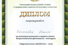 25 марта в Культурном центре МВД РТ прошел 2 отборочный тур Всероссийского конкурса "Хрустальные звездочки". В этом конкурсе среди участников из разных городов нашей республики была воспитанница и нашей школы Хисамова Ильсия (кл.преп.Хисамовой Р.М). Она выступила с песней, посвященной 70-летию Победы, получила приз и диплом за активное участие в конкурсе.