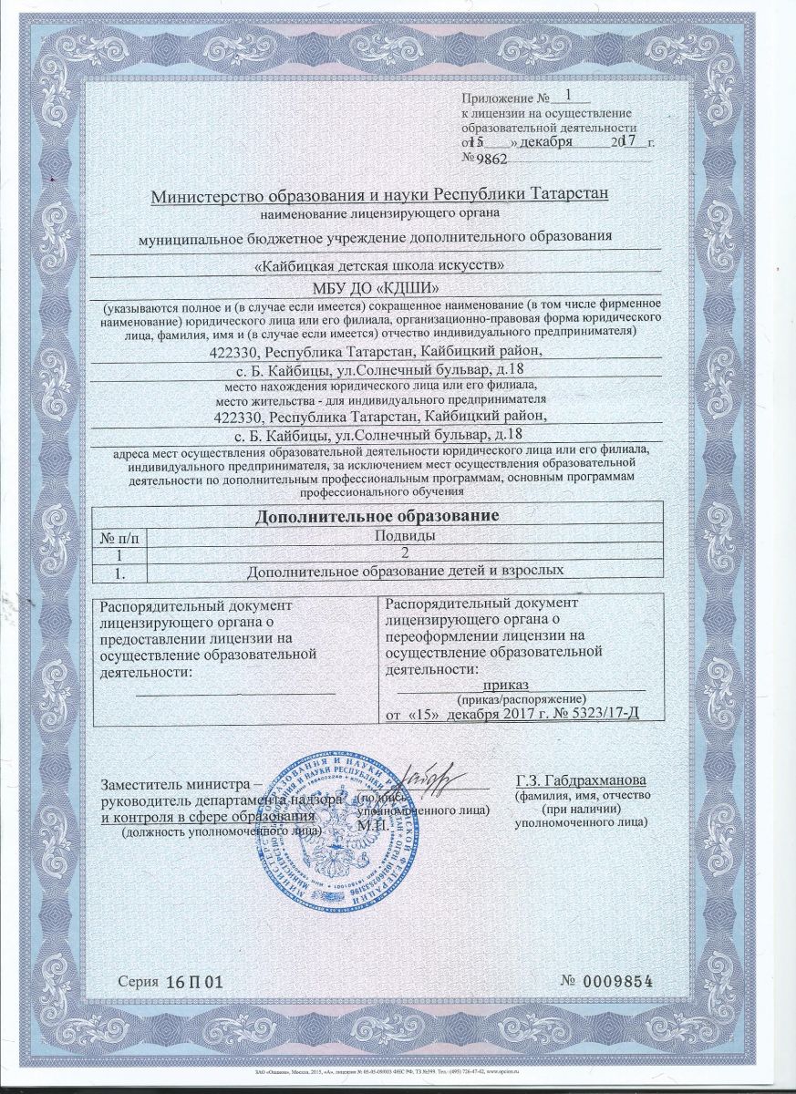 Постановление об от открытии Кайбицкой детской школы искусств