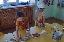 Балалар һәр конне тәрбияче ярдәмчесенә өстәл әзерләргә булышалар. Бу эшне алар бик яратып башкара.