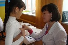 Бүген Кайбыч район үзәк хастаханәсеннән балалар табибы Таулбаева А.Ф шәфкать туташы Ибраһимова М. белән берлектә балаларга медицина тикшерүе уздырдылар.