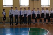 Вот перед зрителями юнармейцы – девятиклассники. Это славная команда. Здесь победители юнармейских игр, борцы, лыжники, теннисисты, легкоатлеты и обладатели золотого значка ГТО. И что вы думаете, это все в лице 6 учеников. Командир отряда Владимиров Даниил. Командирский голос, уверенность. Да и члены отряда как один выполняют движения. Вот отряд двинулся строем, все четко. Гремит песня. Рапорт командира и снова, до мурашек по коже, «Служим России!».