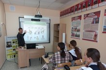 В связи с этим днем, целью которой является поднятие престижа национальных служб спасения, в школе был проведен урок ОБЖ по теме "Защита населения в ЧС".