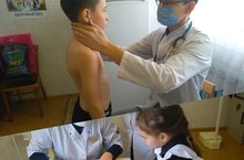 Врачи центральной районной больницы провели медосмотр учащихся. К сожалению, подъехали не все специалисты.Приезд окулиста планируется чуть позже/ Мәктәпкә бүген районның үзәк сырхауханә табиблары килде. Алар балаларның сәламәтлеген тикшереп киттеләр