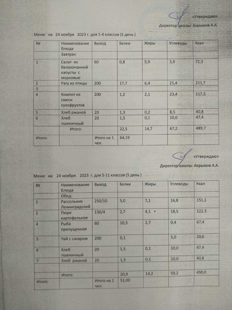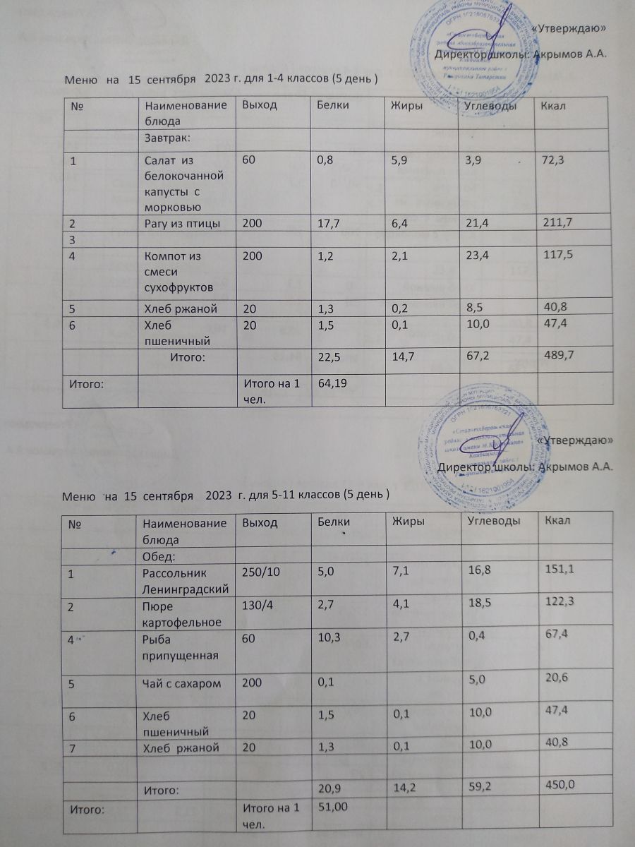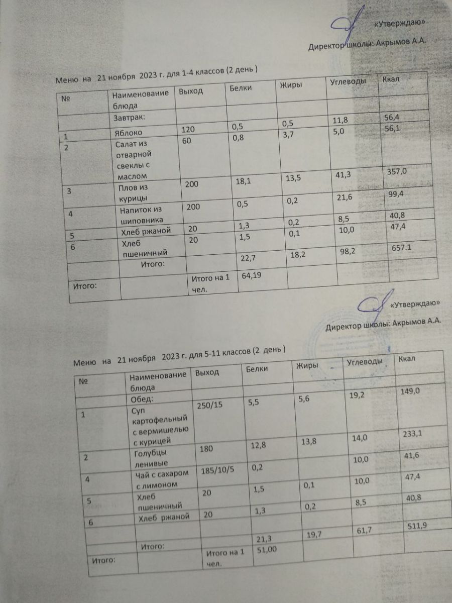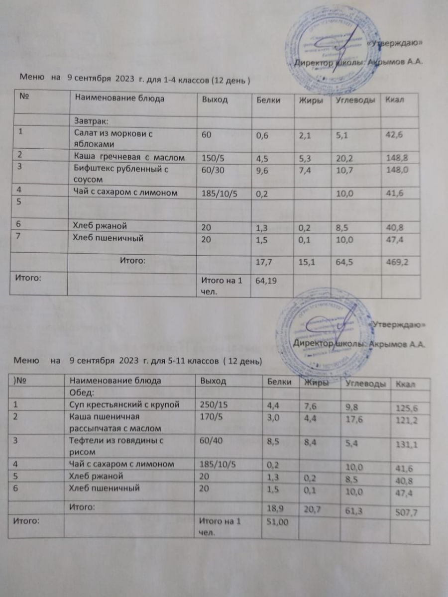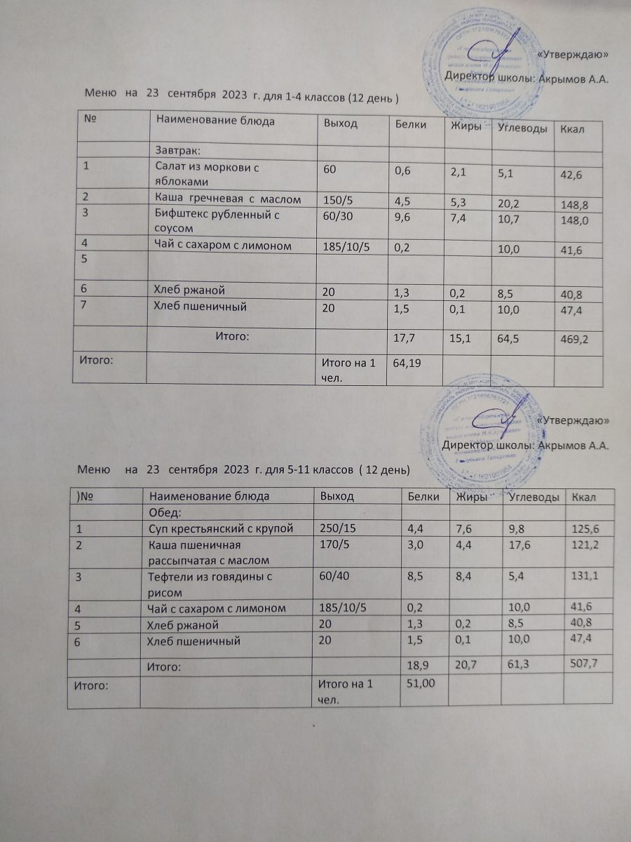 Ежедневное меню учащихся 1-4, 5-11 классов на 2023-2024 уч.год