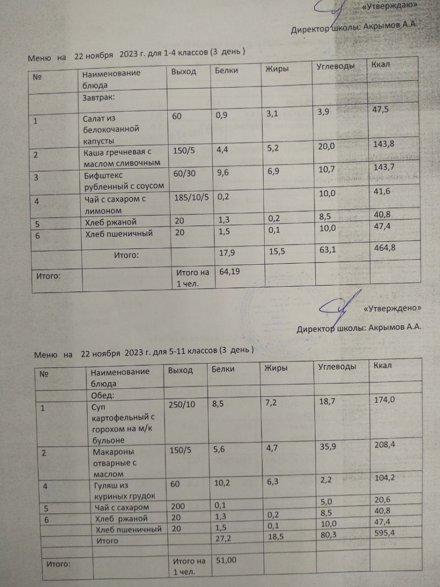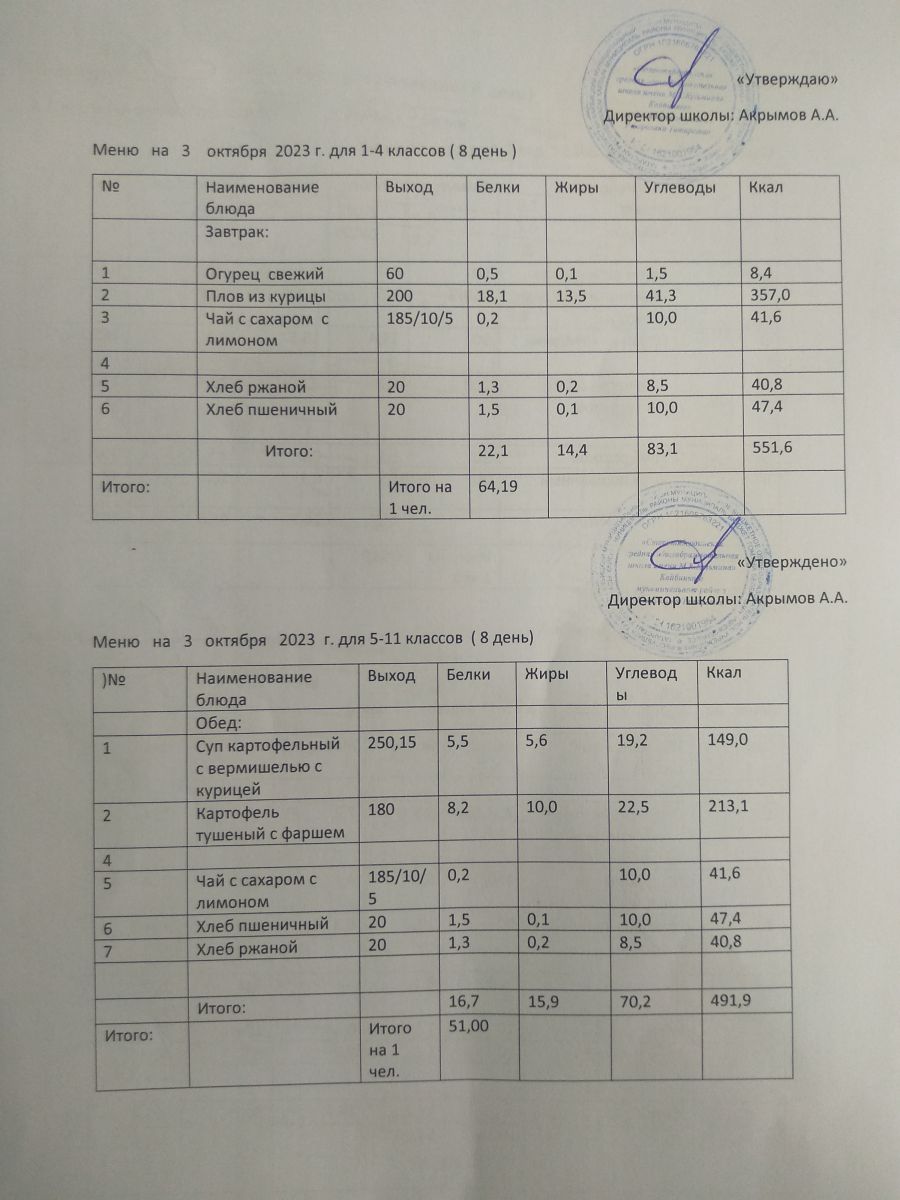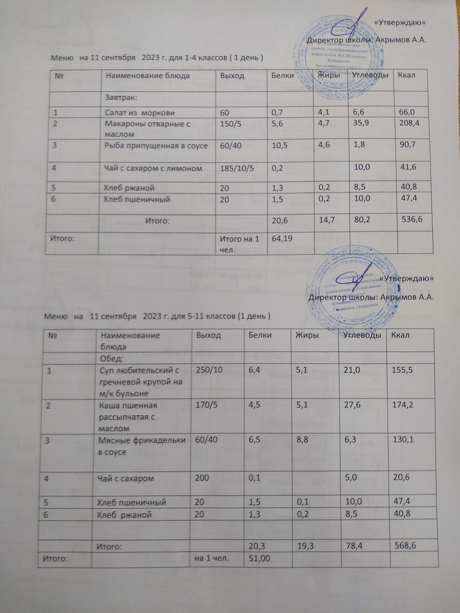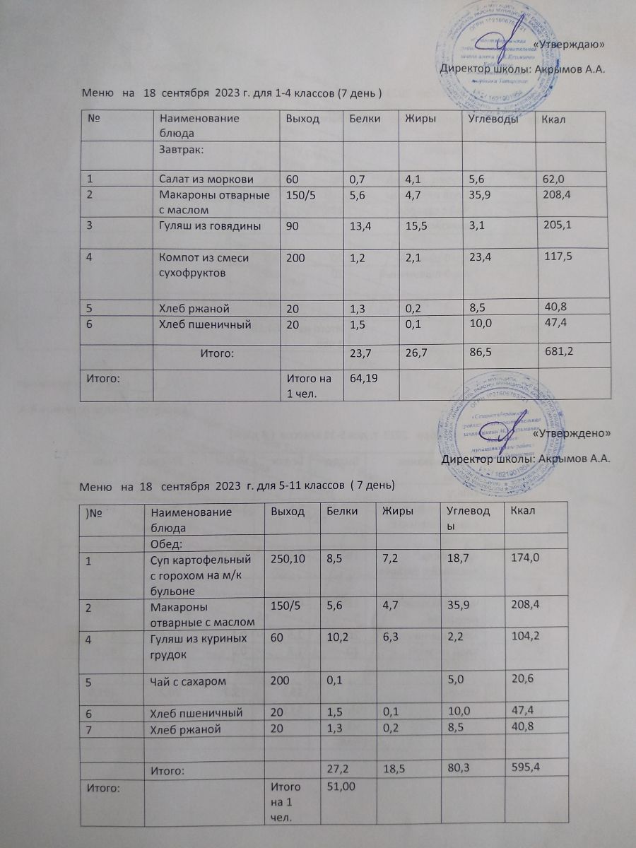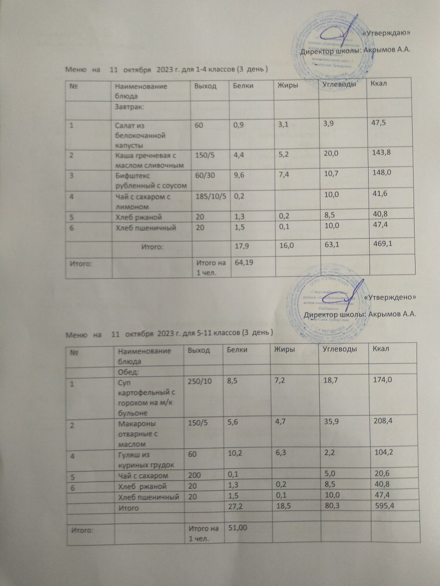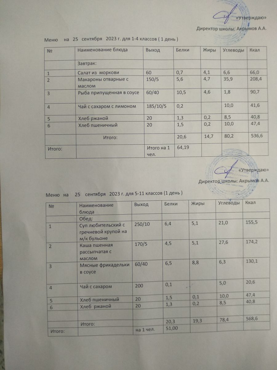 Ежедневное меню учащихся 1-4, 5-11 классов на 2023-2024 уч.год