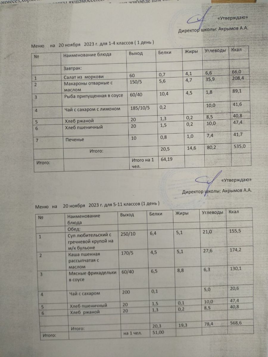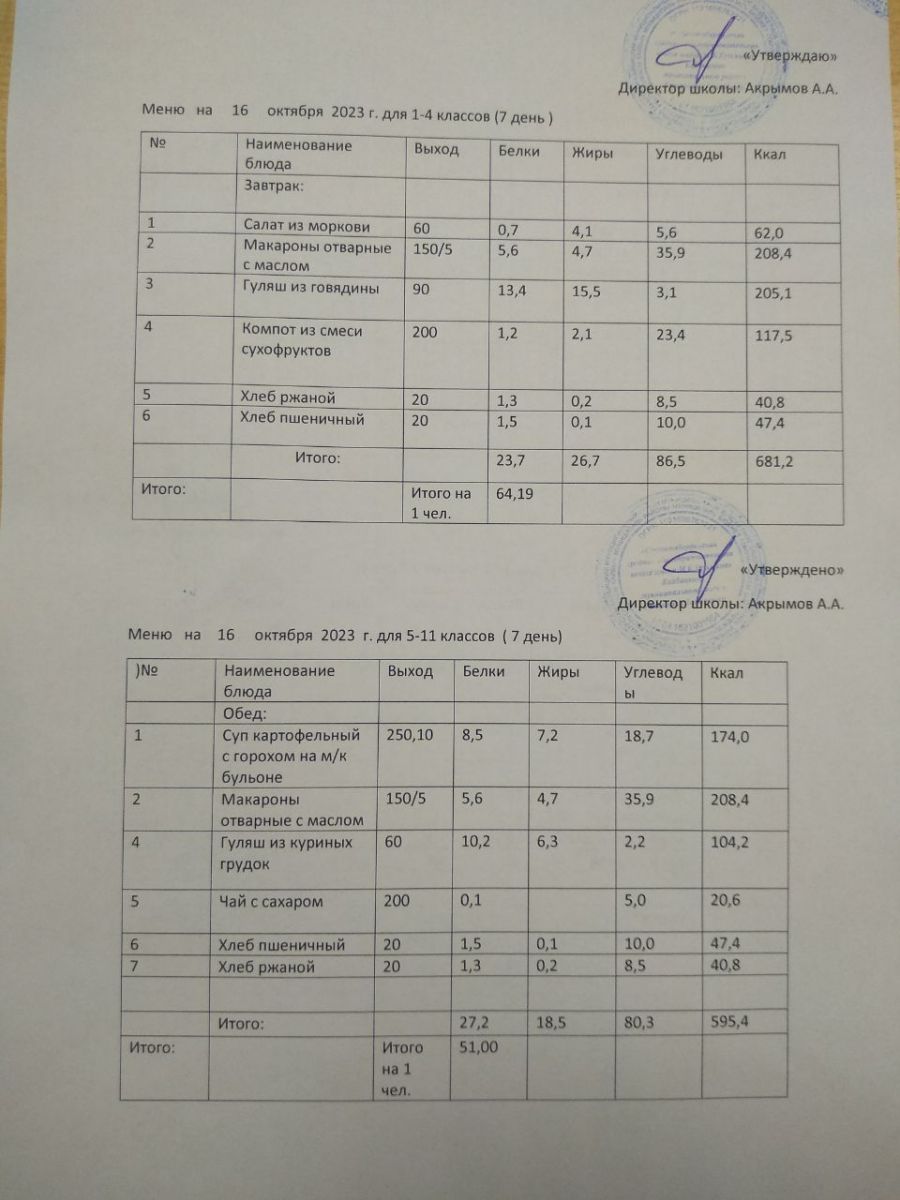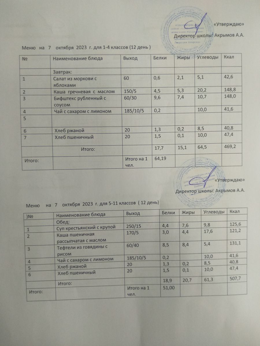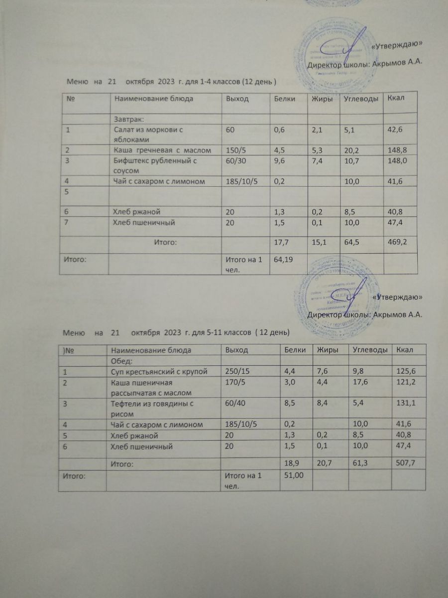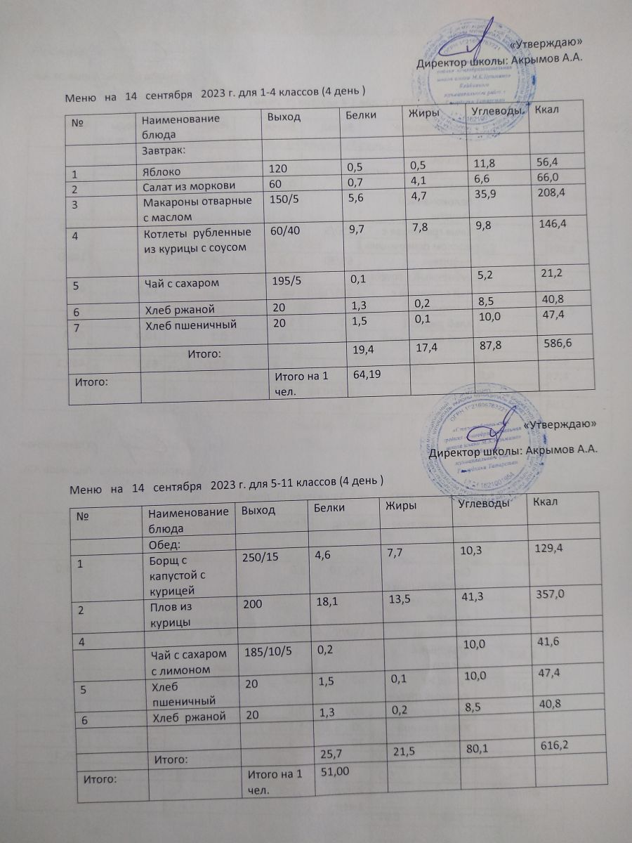 Ежедневное меню учащихся 1-4, 5-11 классов на 2023-2024 уч.год