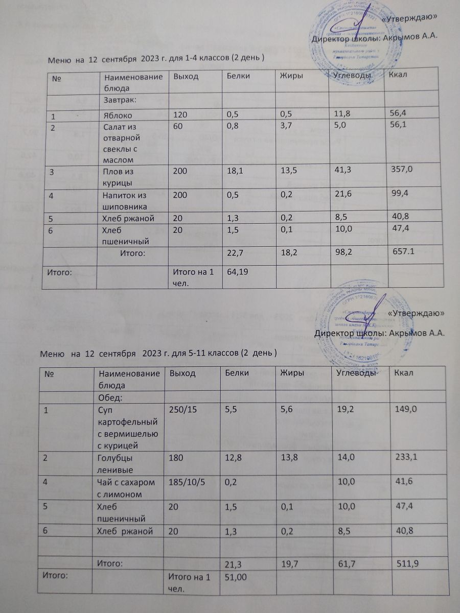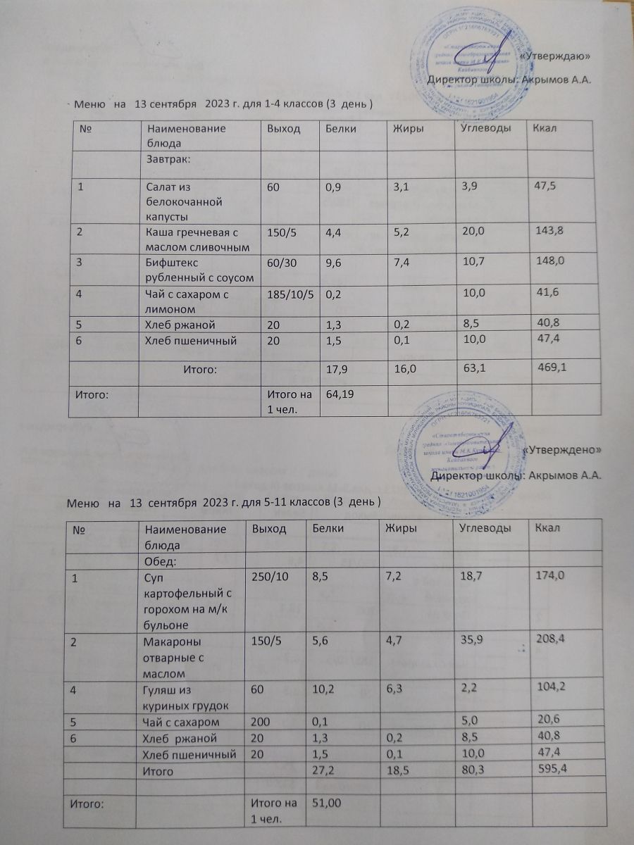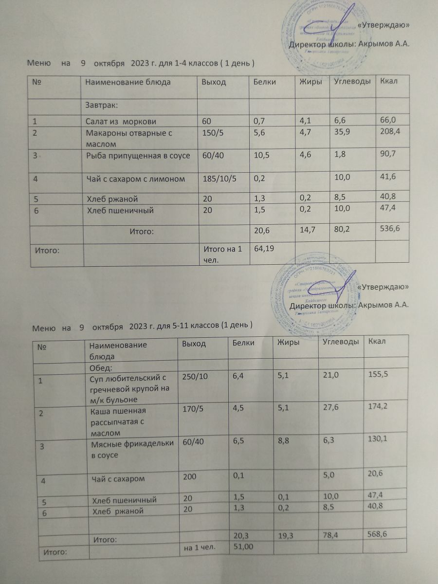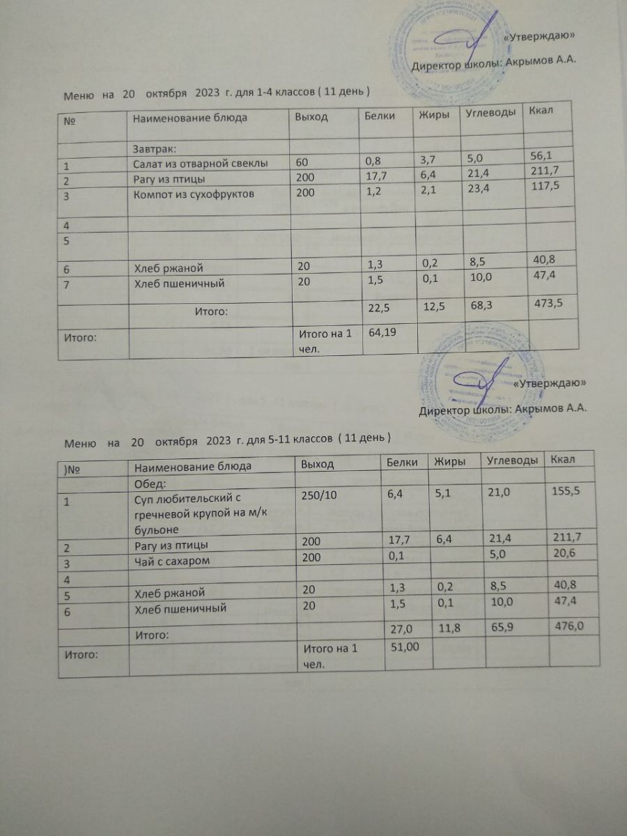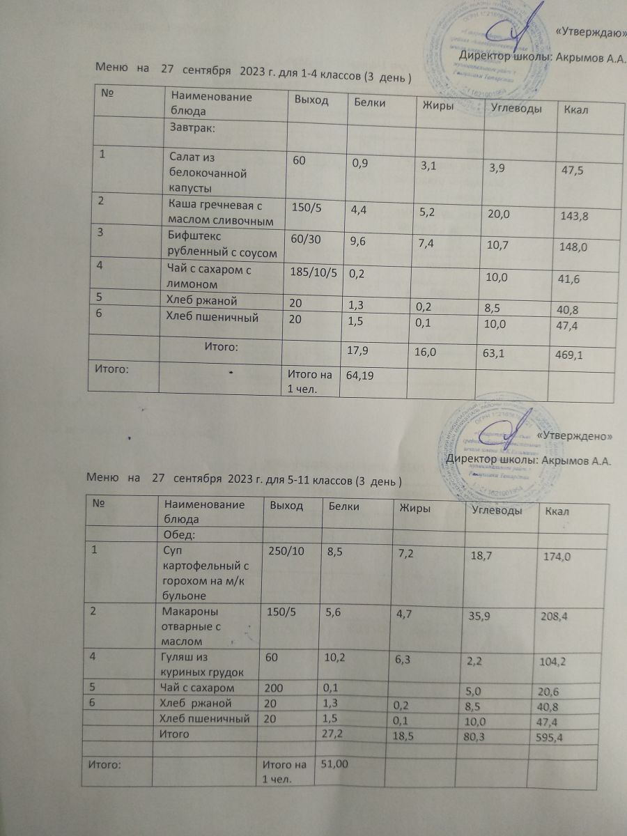 Ежедневное меню учащихся 1-4, 5-11 классов на 2023-2024 уч.год