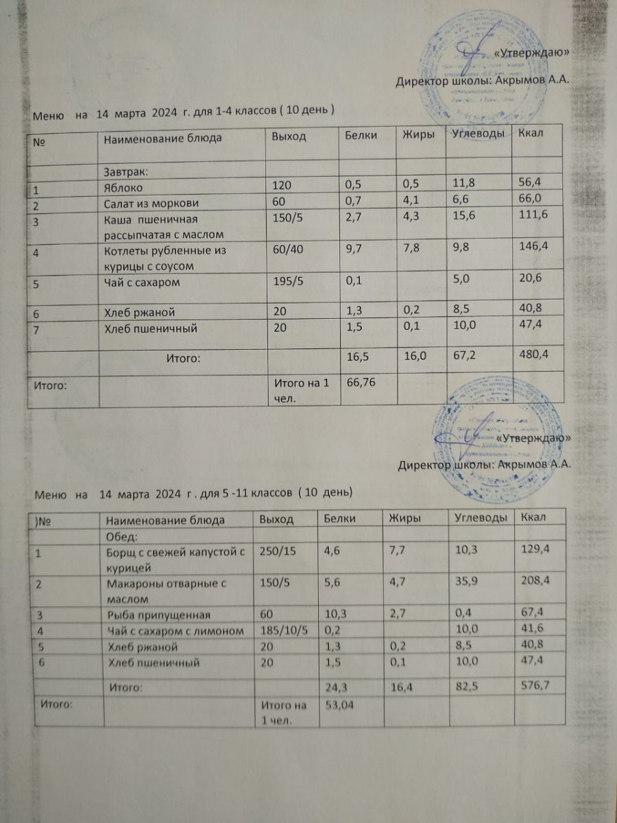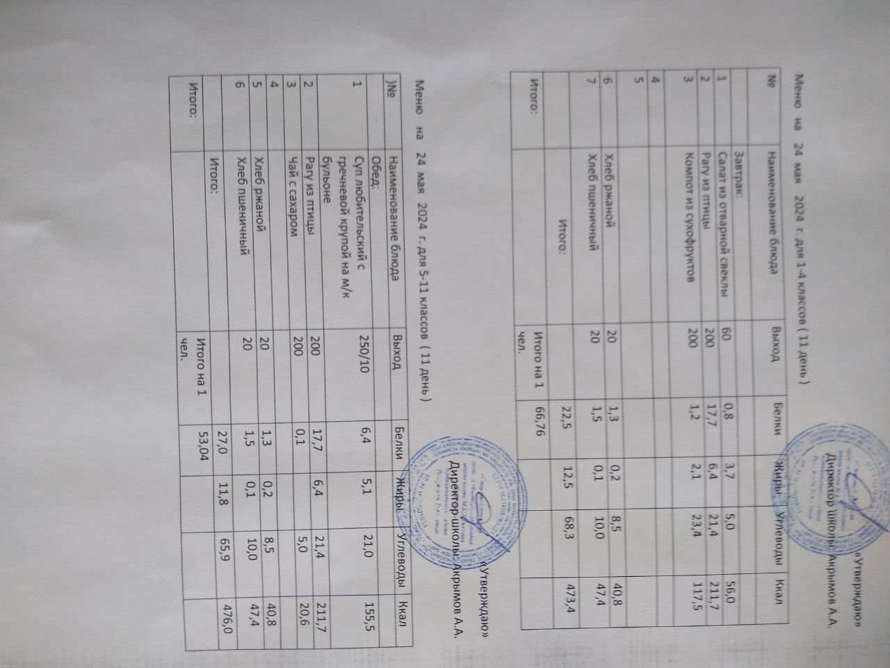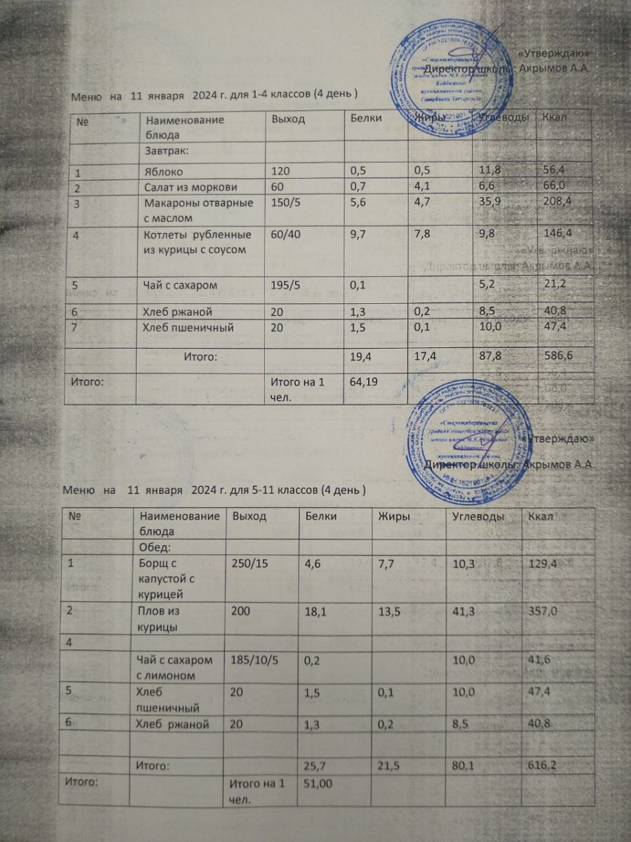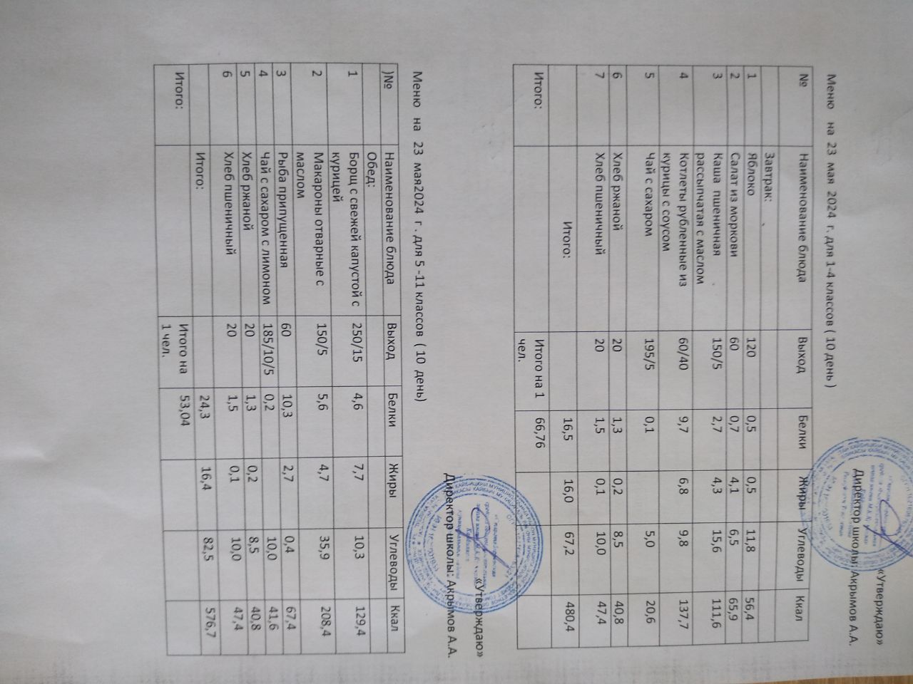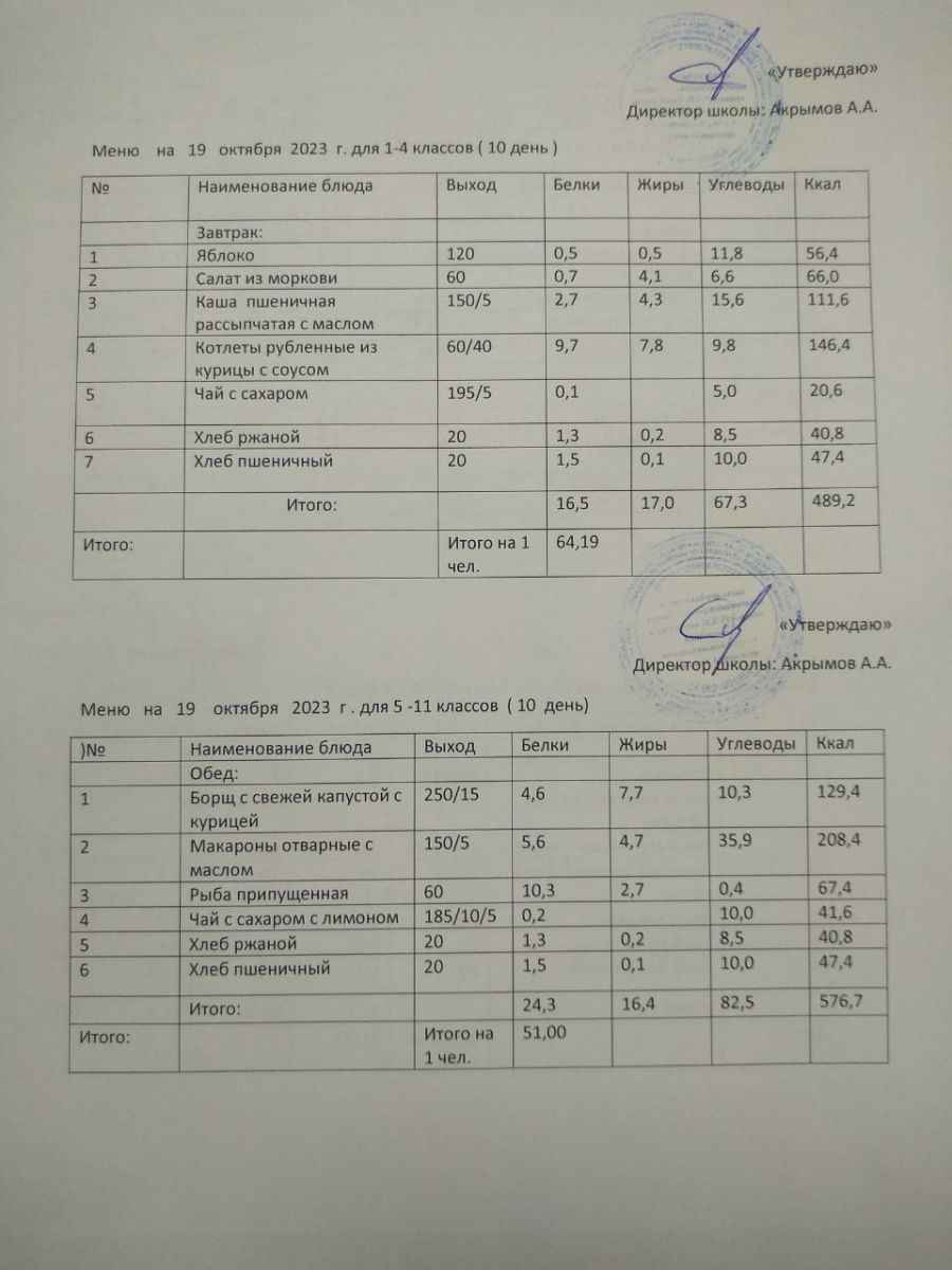Ежедневное меню учащихся 1-4, 5-11 классов на 2023-2024 уч.год