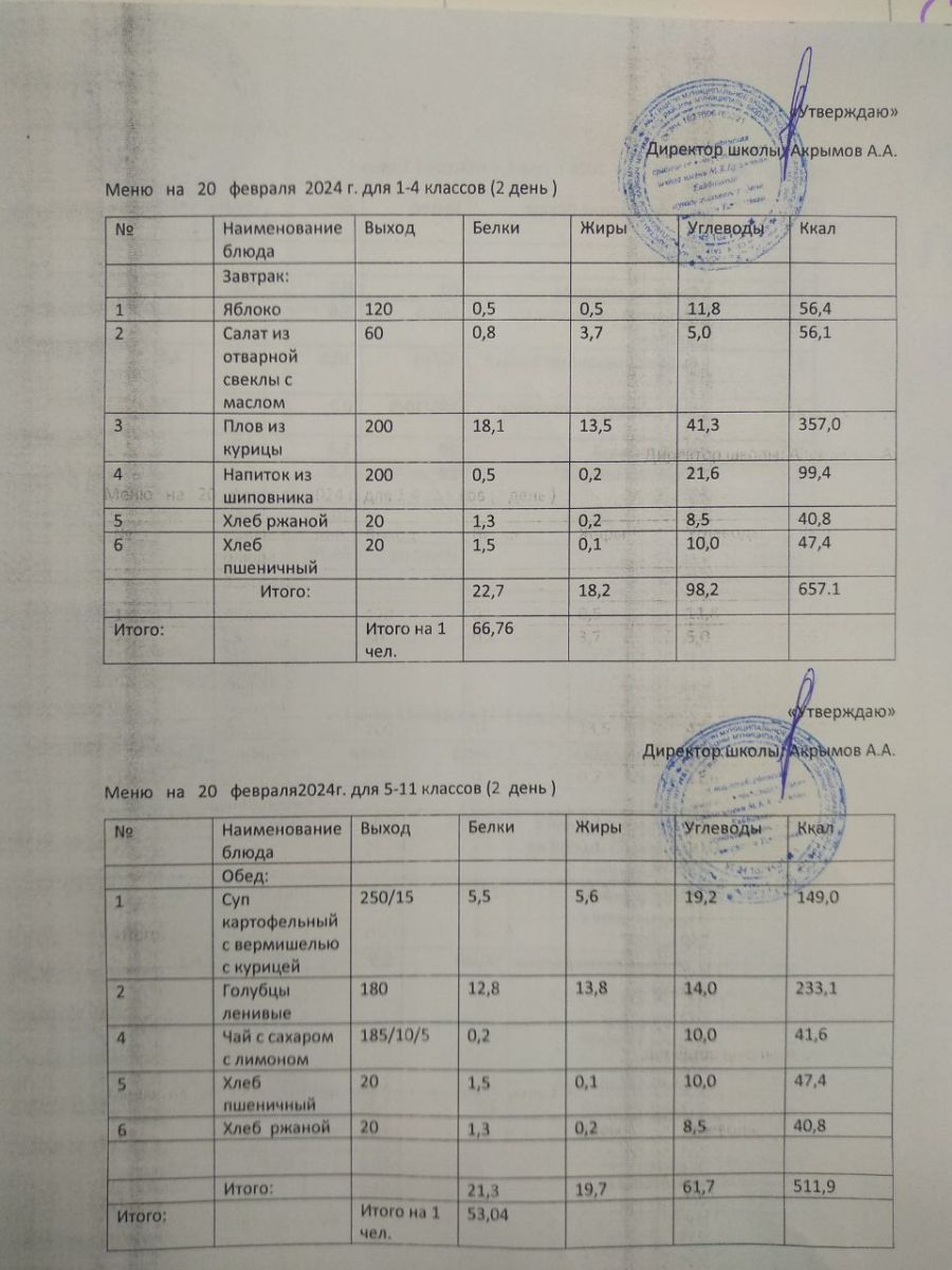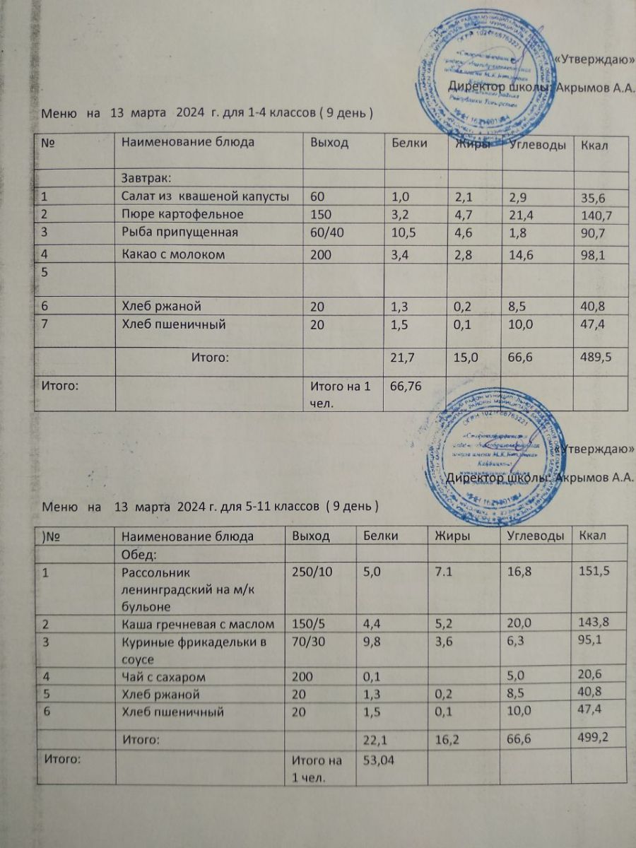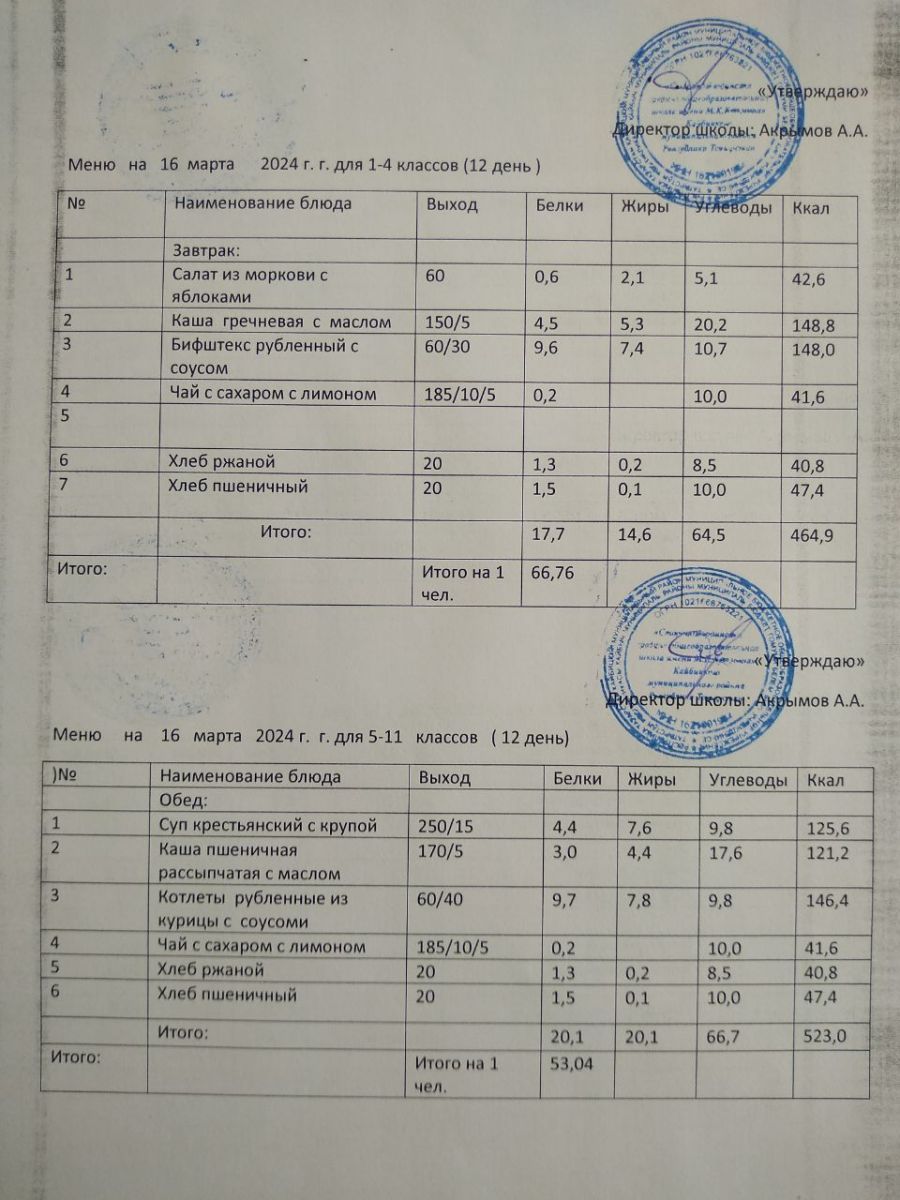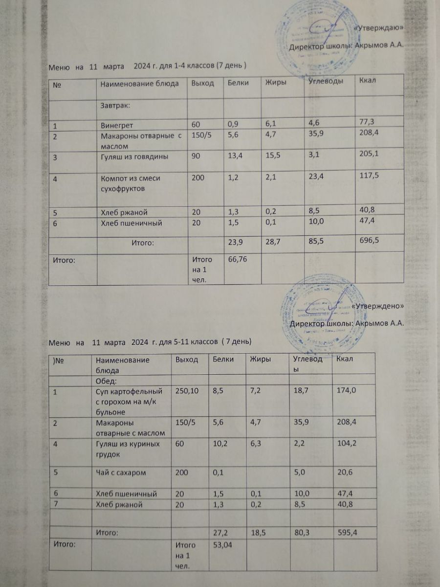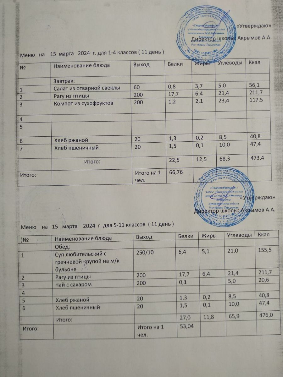 Ежедневное меню учащихся 1-4, 5-11 классов на 2023-2024 уч.год