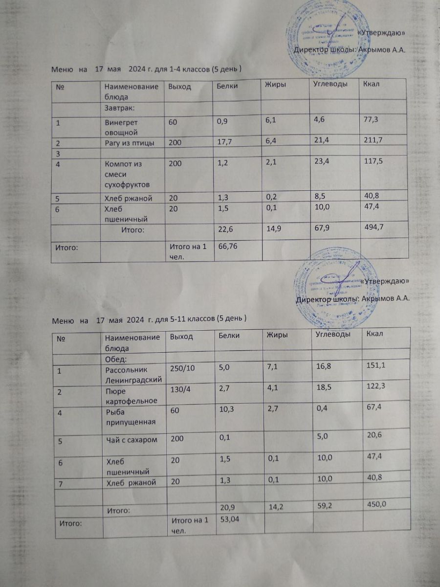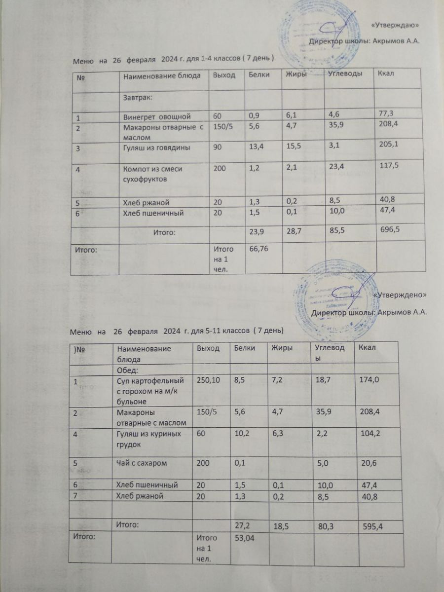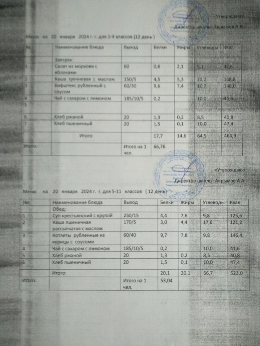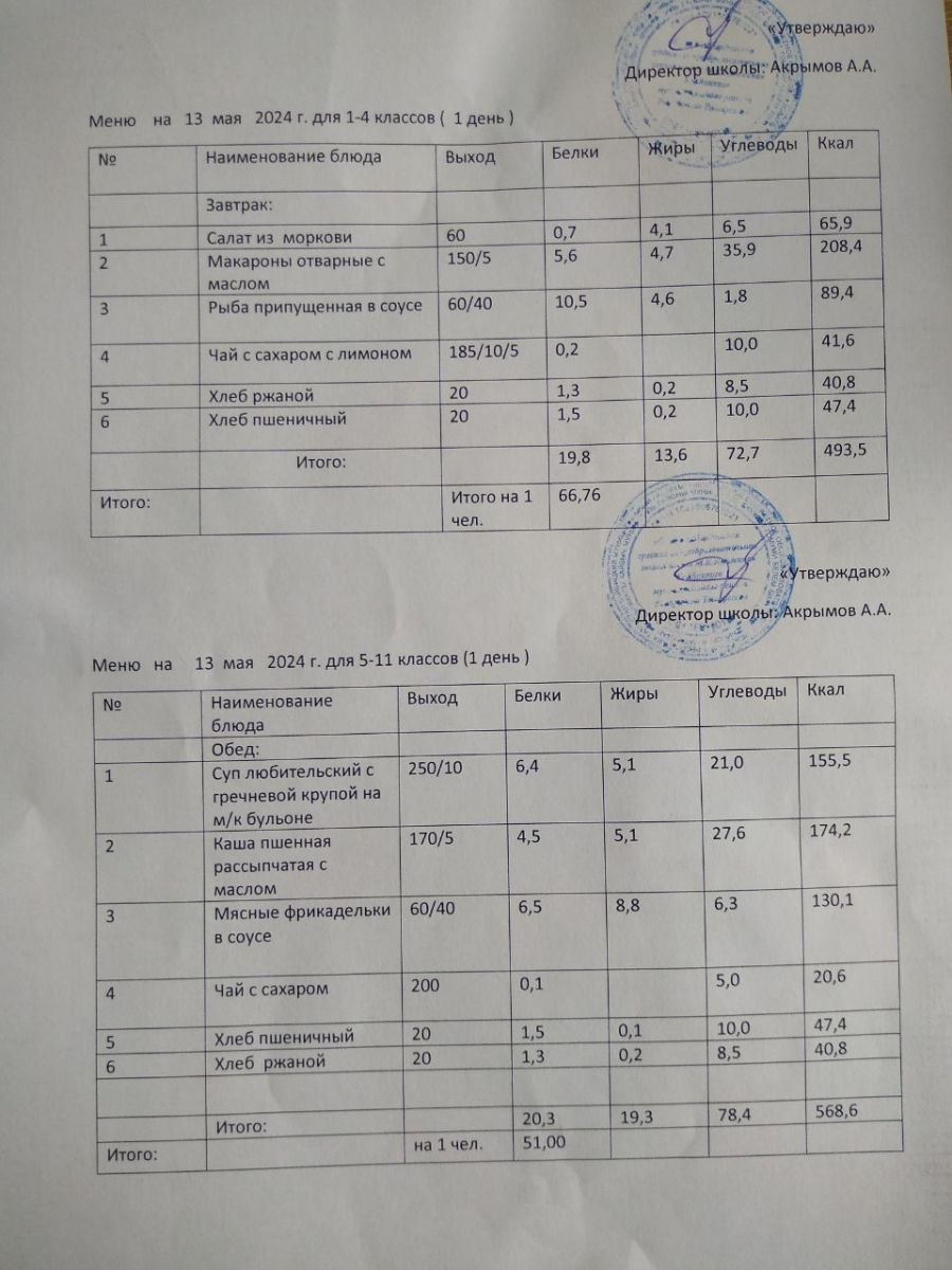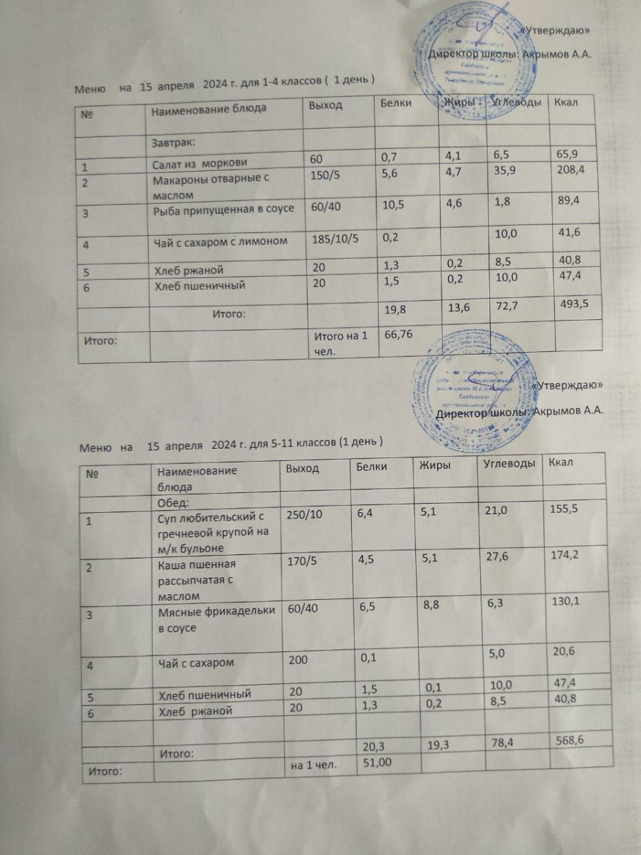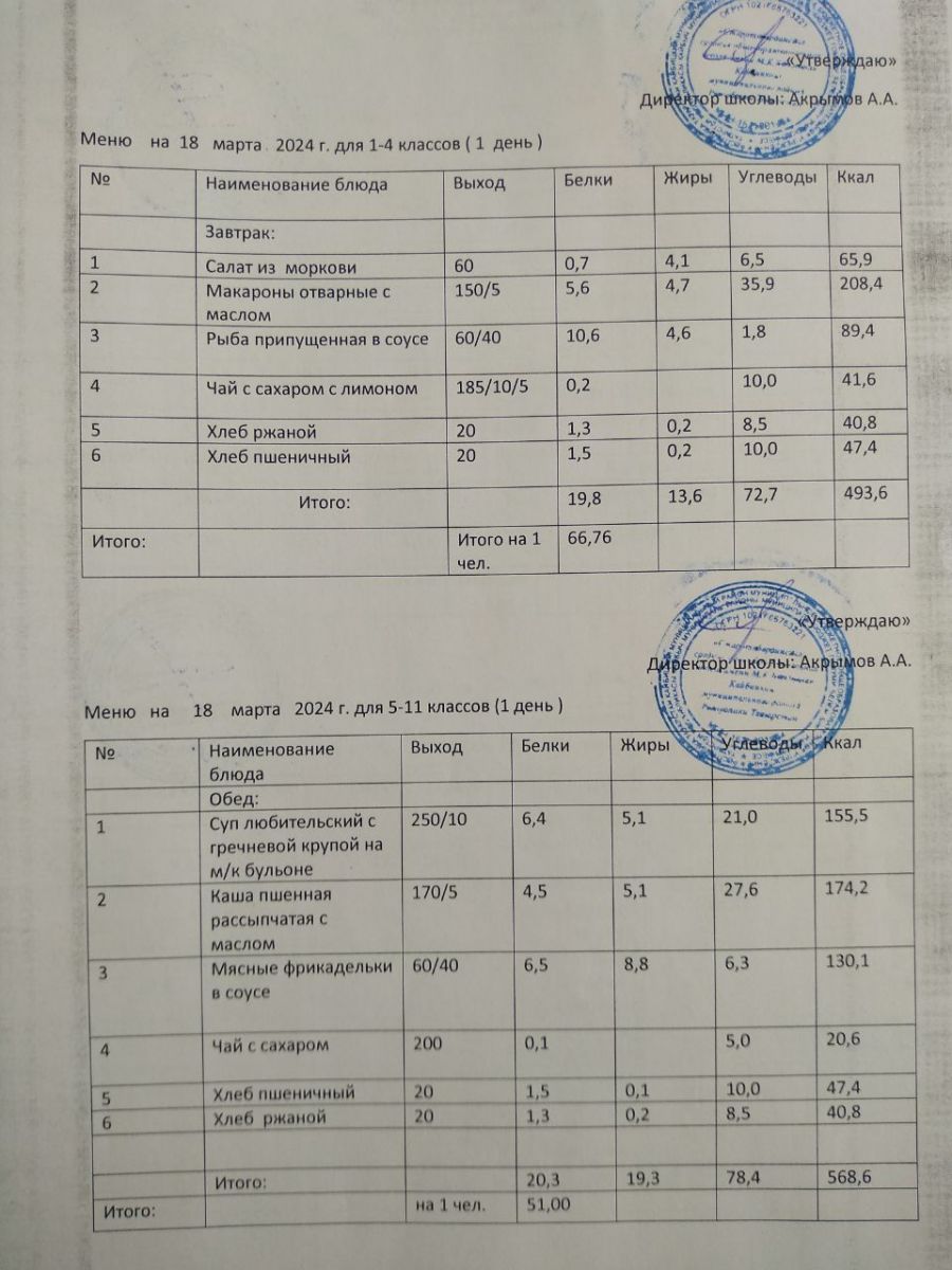 Ежедневное меню учащихся 1-4, 5-11 классов на 2023-2024 уч.год