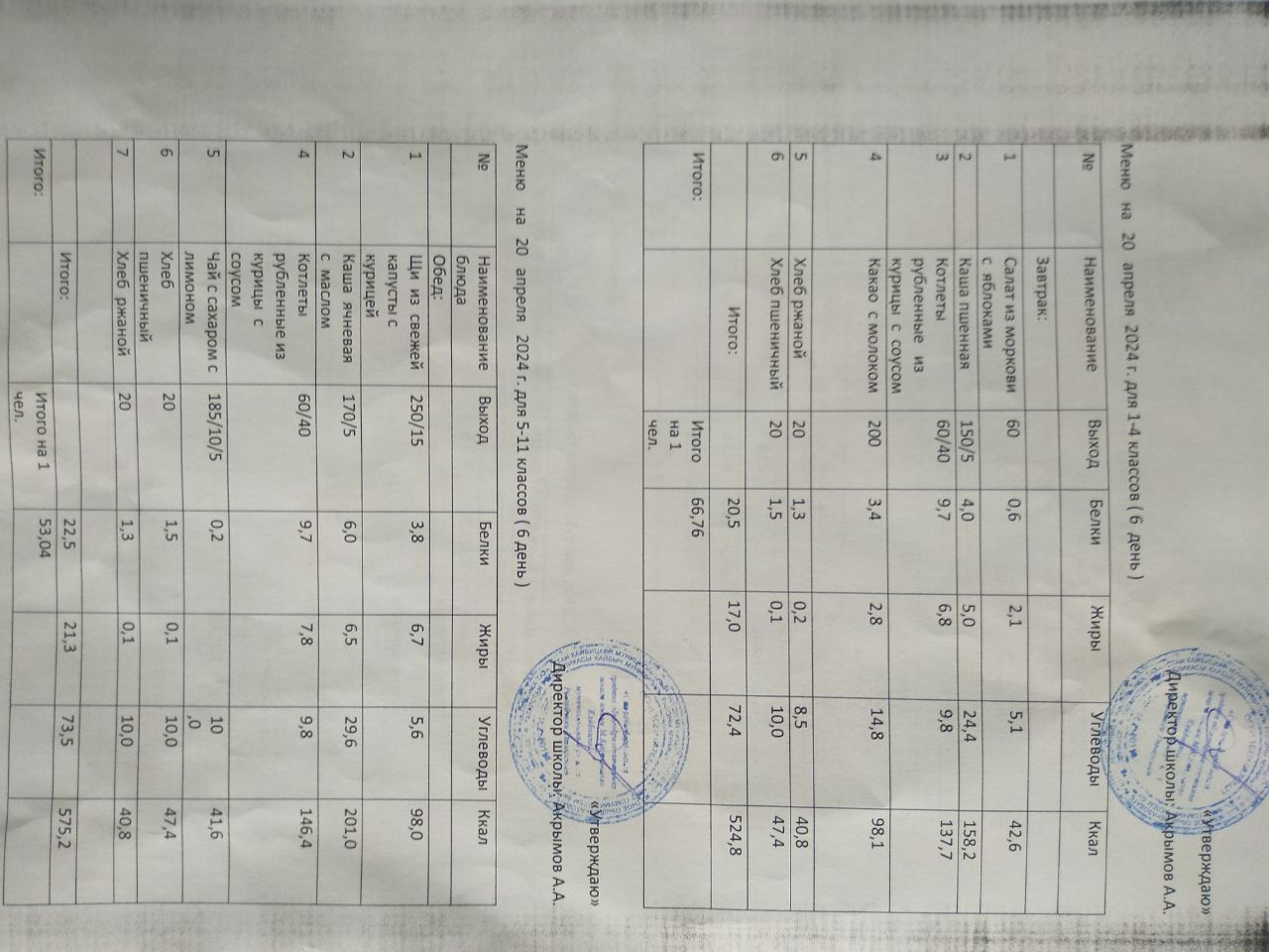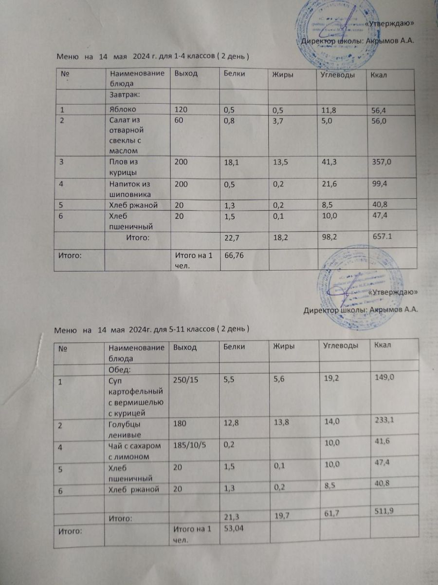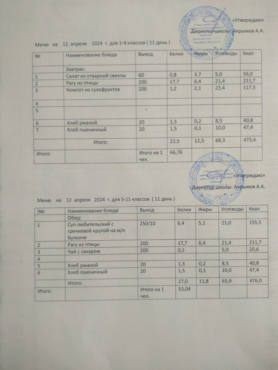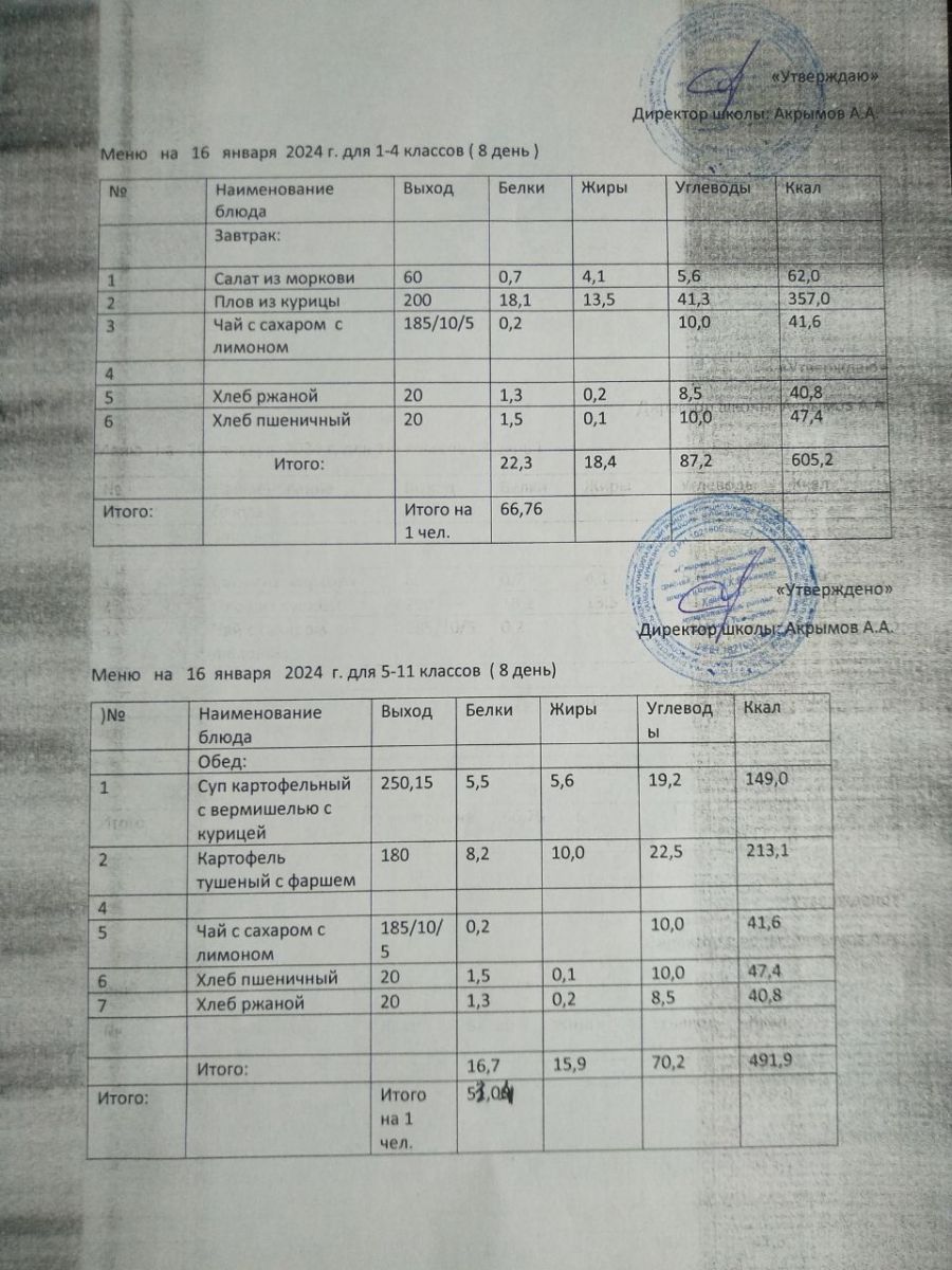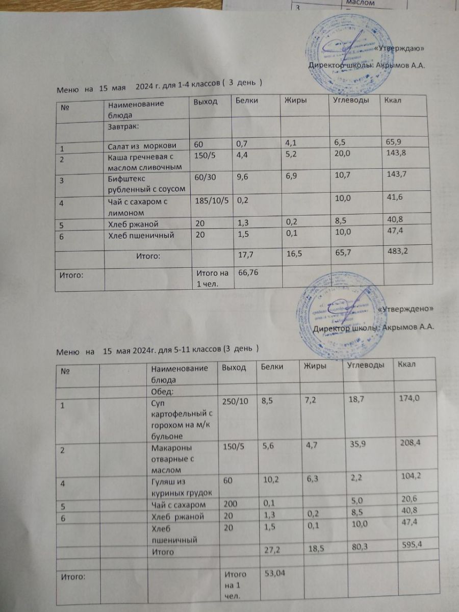 Ежедневное меню учащихся 1-4, 5-11 классов на 2023-2024 уч.год