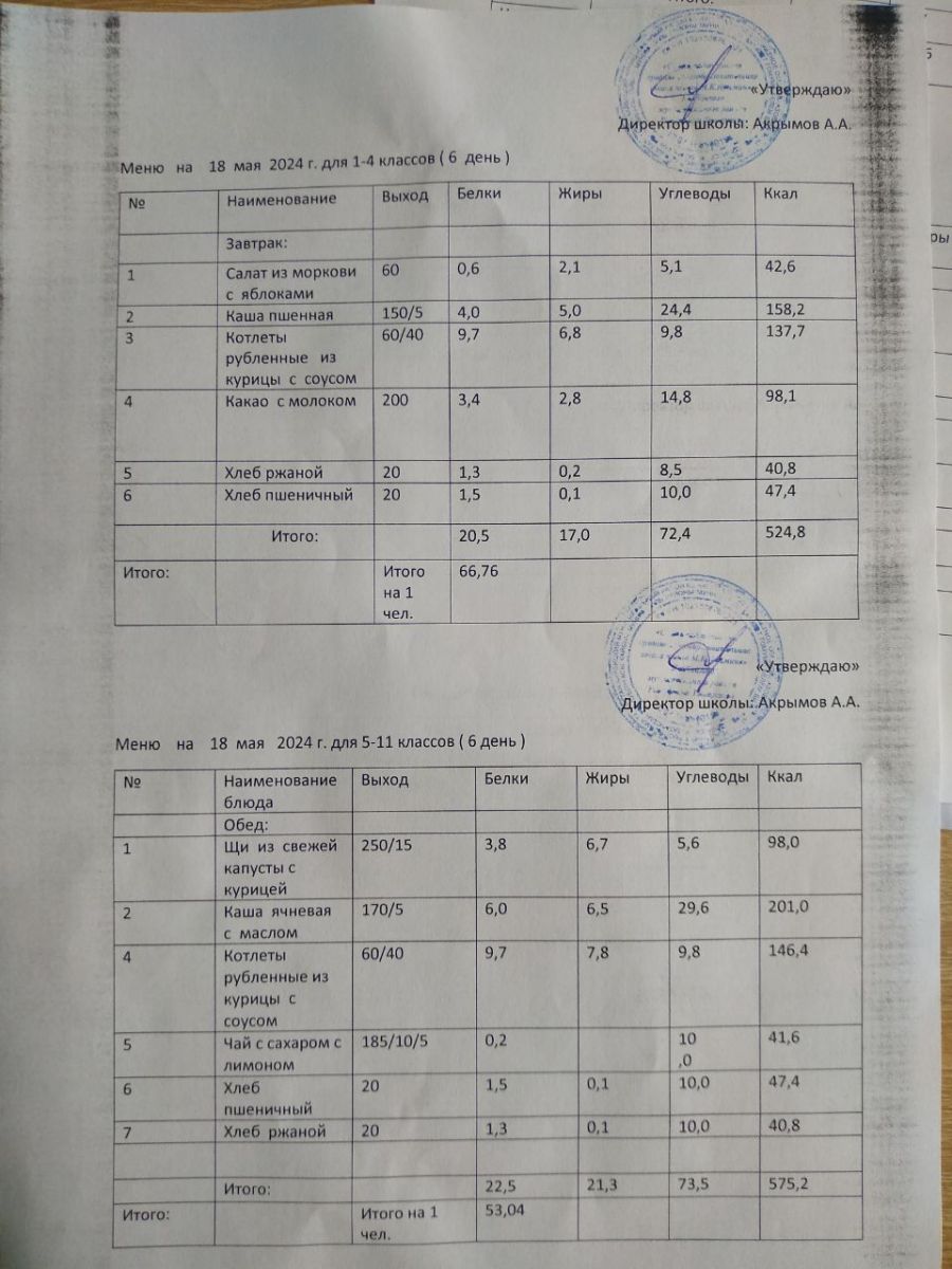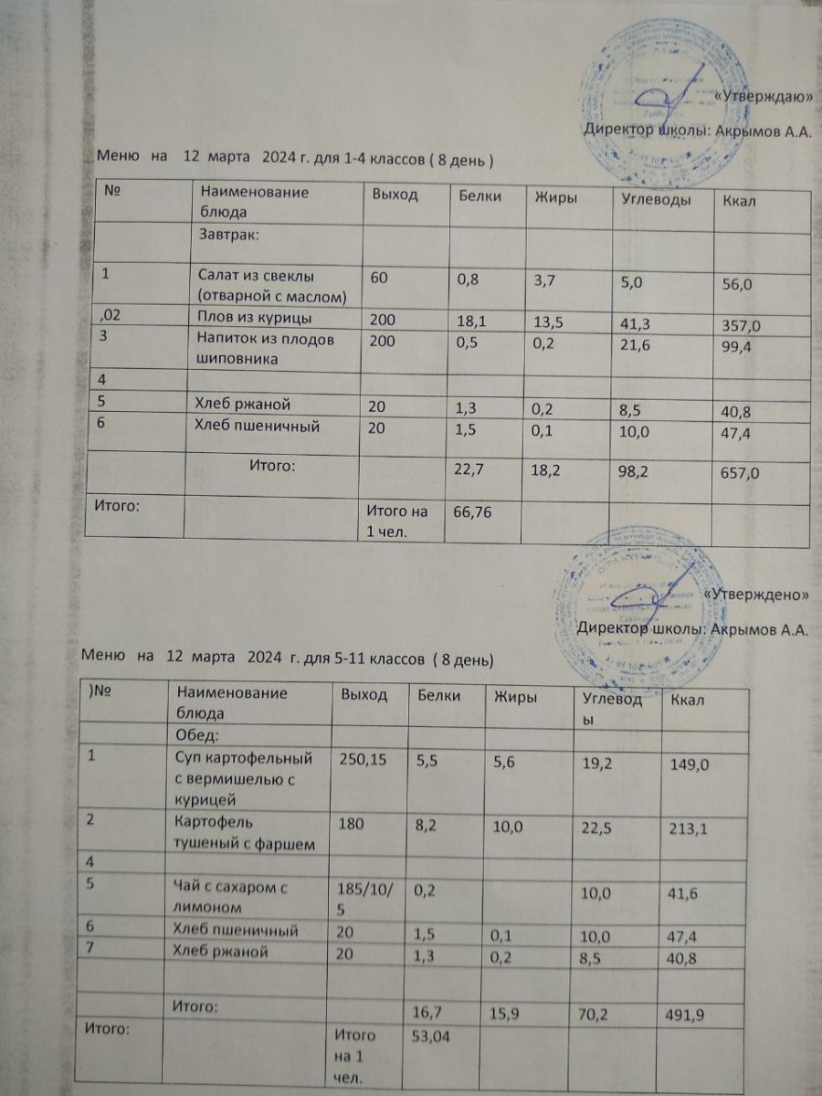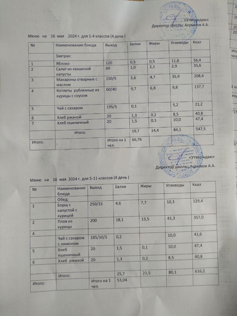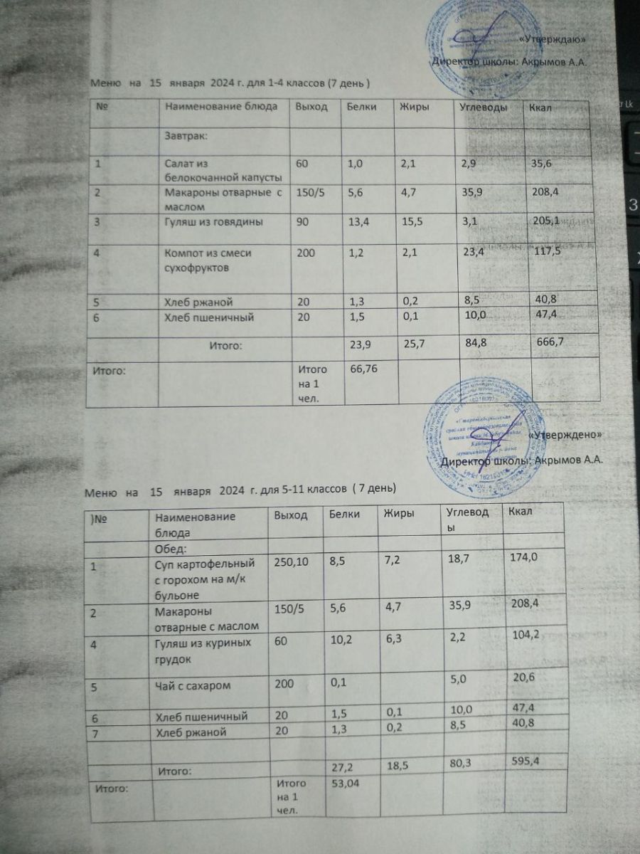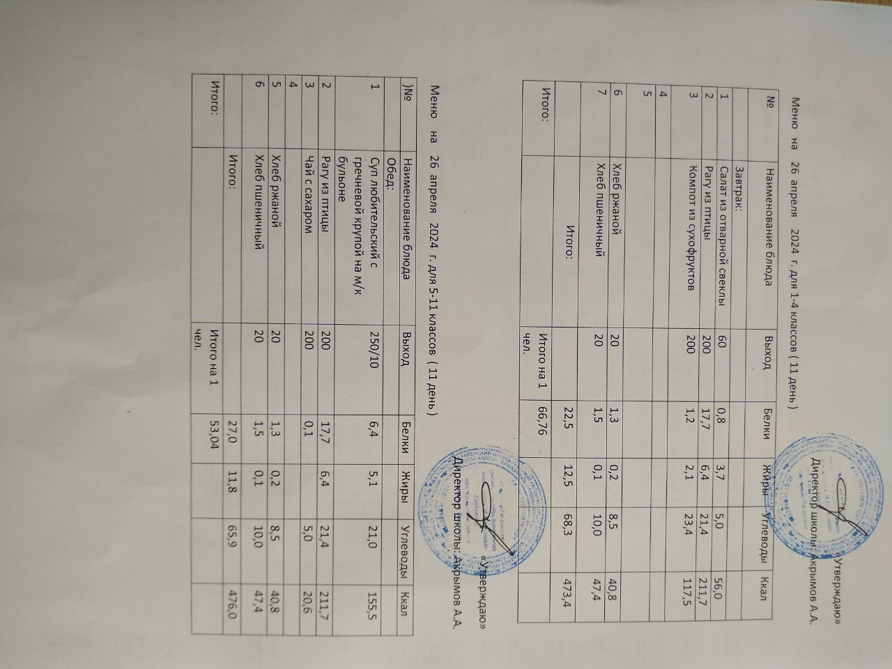 Ежедневное меню учащихся 1-4, 5-11 классов на 2023-2024 уч.год
