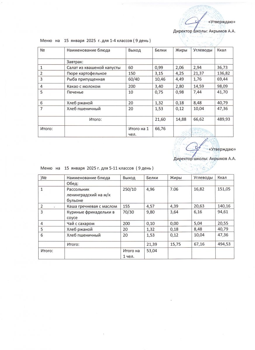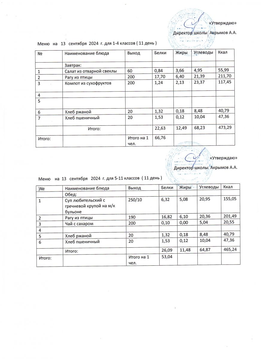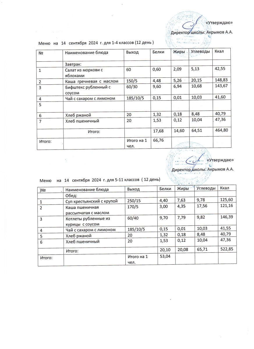 Ежедневное меню учащихся 1-4, 5-11 классов на 2024-2025 уч.год