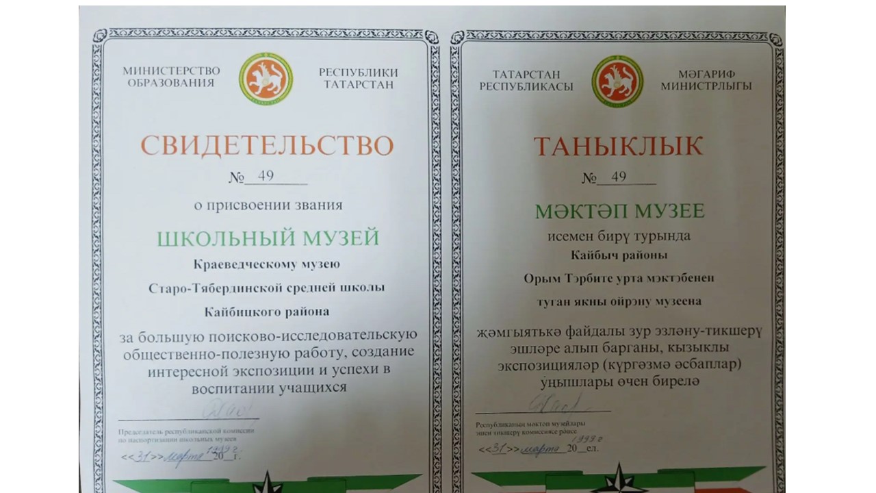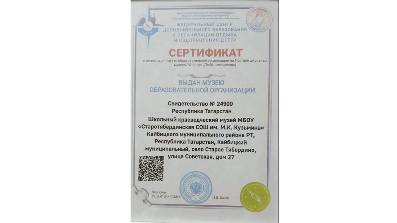 Муниципальное бюджетное общеобразовательное учреждение «Старотябердинская средняя общеобразовательная школа имени М.К.Кузьмина» Кайбицкого муниципального района Республики Татарстан