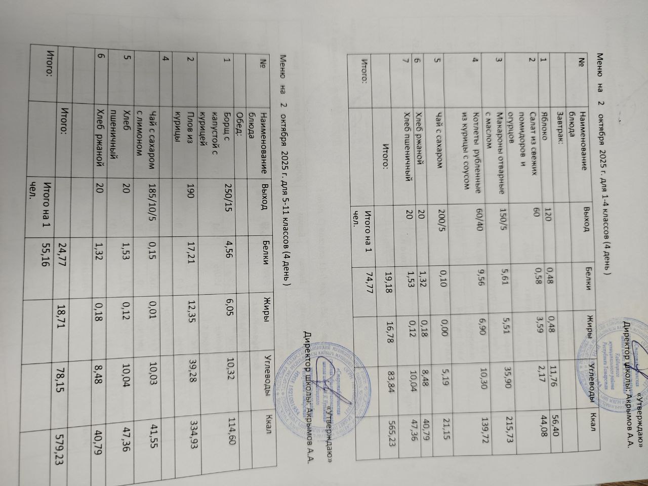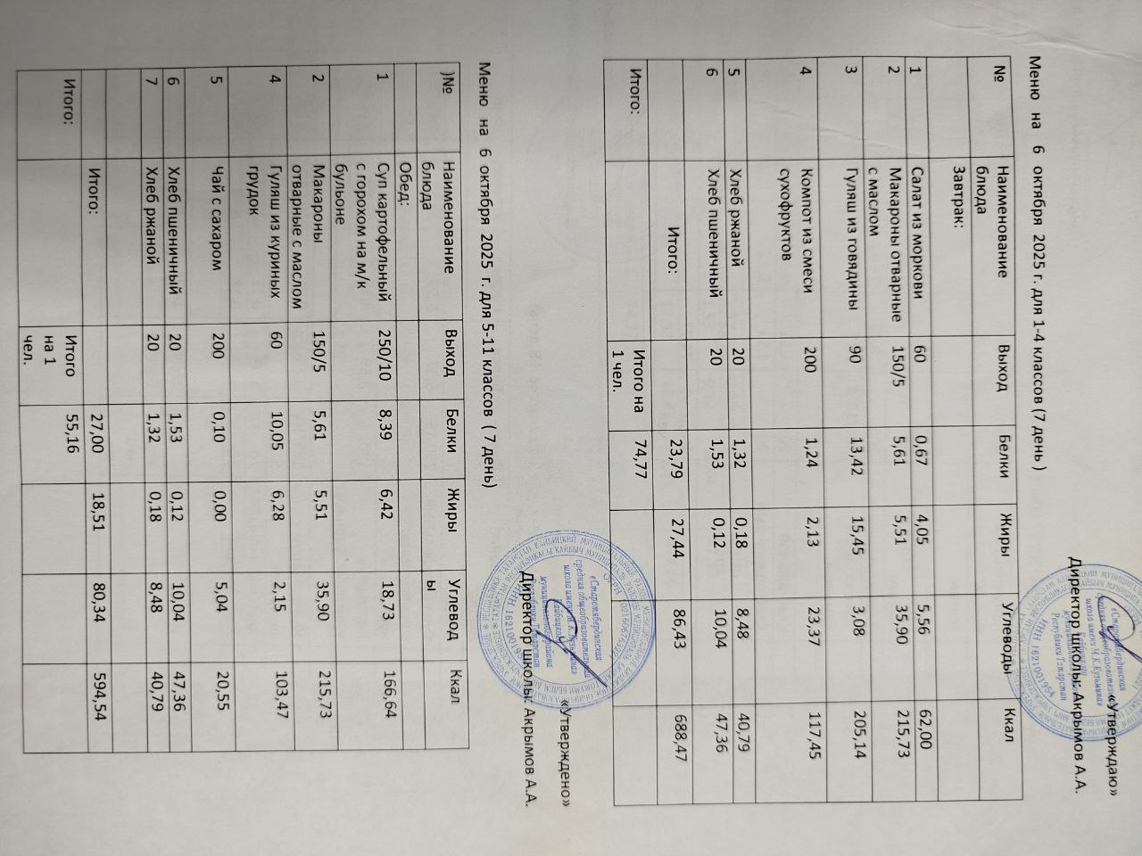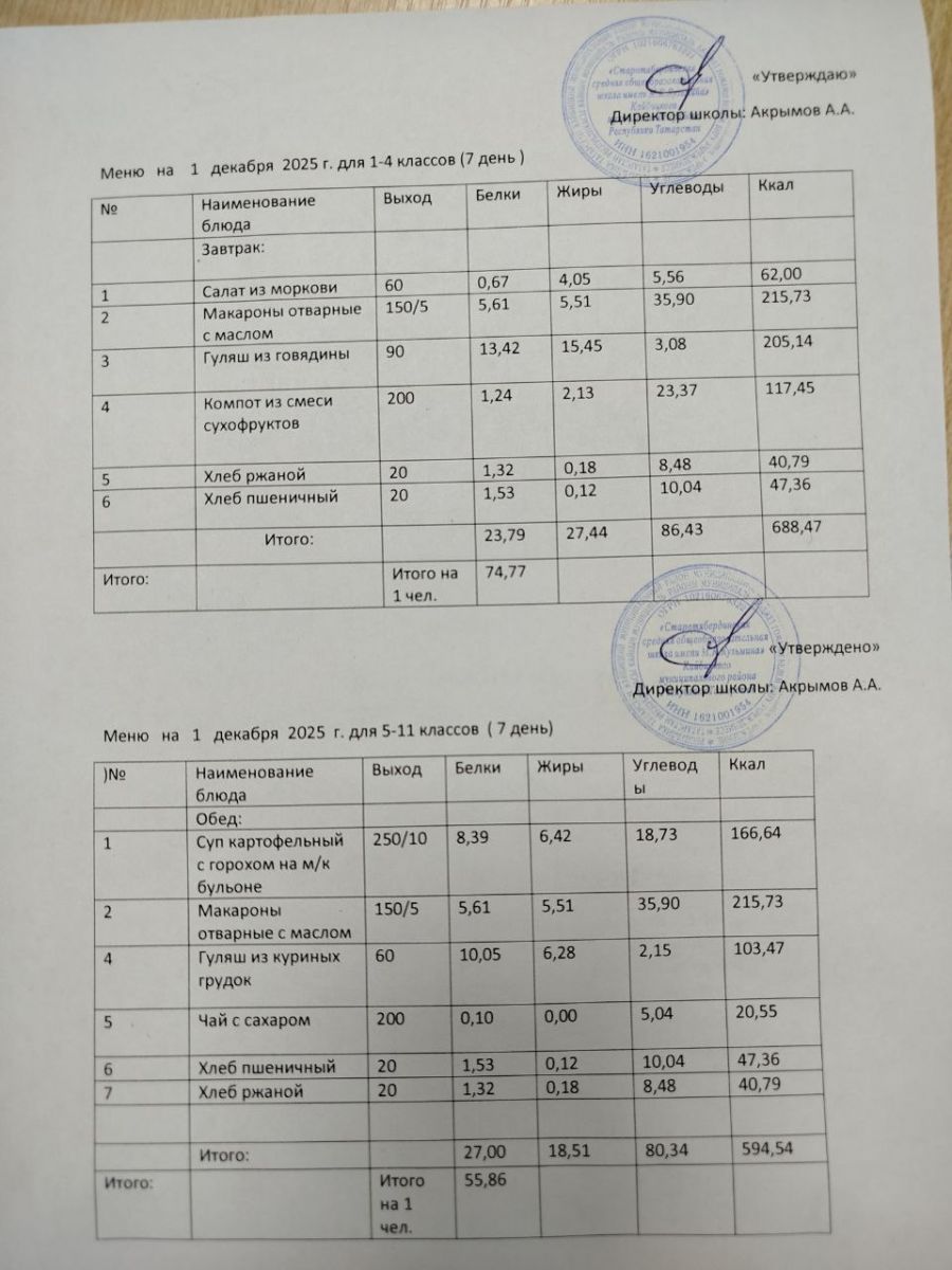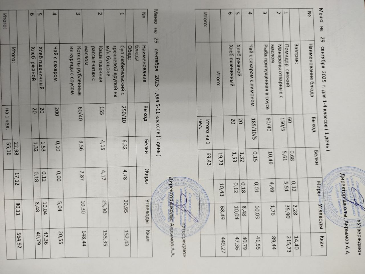 Ежедневное меню учащихся 1-4, 5-11 классов на 2025-2026 уч.год