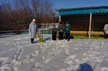Зимняя прогулка... Что может быть прекраснее! Увлекательные игры и развлечения зимой на свежем воздухе доставляют детям огромную радость, и приносят потенциальную пользу их здоровью. Румяные щечки, блестящие глаза и отличное настроение — такой результат прогулок зимой нравится всем: и детям, и взрослым! Детям не хочется уходить с прогулки, ведь это так увлекает, а время пролетает незаметно. Вот так весело гуляя, наблюдая, трудясь и играя проводят время воспитанники детского сада "Солнышко"со своим воспитателем.