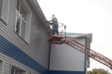 Лето - это не только пора отпусков , но и подготовка школ к новому учебному году. Сегодня мужчины устанавливали водосточные трубы на здании школы. Перед началом работы был проведен инструктаж по технике безопасности.