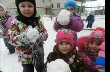 Мы не ели, мы не пили, Бабу снежную лепили. Снег февральский слабый, слабый, мялся под рукой, Но как раз для снежной бабы нужен нам такой.