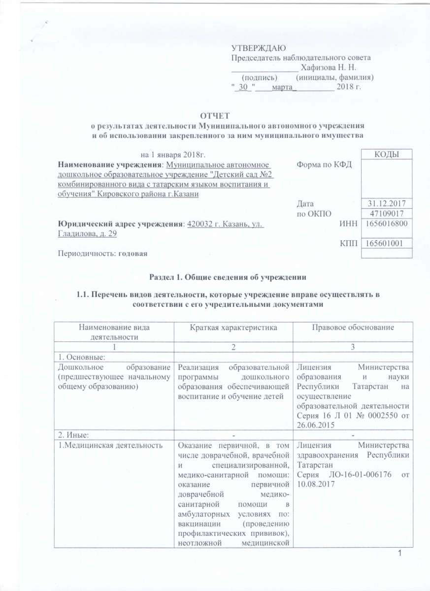 Отчёт о результатах деятельности МАДОУ и об использовании закреплённого за ним муниципального имущества за 2018 год