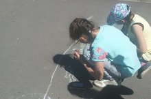Ребята летнего лагеря "Солнышко" приняли активное участие в конкурсе рисунков на асфальте "Как прекрасен этот мир!".