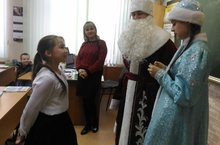 Новогоднюю викторину среди учащихся начальных классов провели учащиеся 11 Э класса в образе Деда Мороза и Снегурочки.