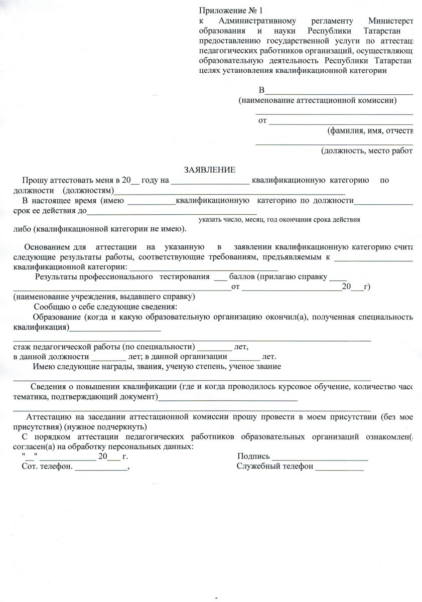 Образец заявления аттестуемого