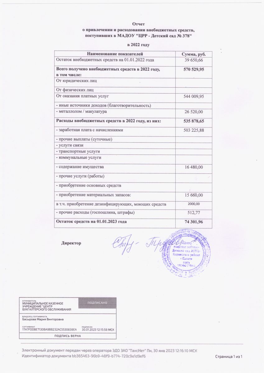 Отчет о привлечении и расходовании внебюджетных средств за 2022г.