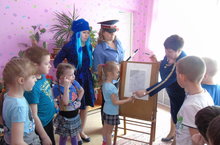 В поддержку социальной компании "Прогноз безопасности" в детском саду проведено мероприятие в подготовительной группе. В гости к ребятам приходили Госавтоинспектор(серьезный, взрослый и мудрый наставник)