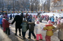 Сегодня дети и сотрудники прощались с Зимой и встречали Весну, праздновали Широкую Масленицу, играли, пели, водили дружные хороводы.