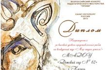 За профессионализм и высокий уровень представленной работы "Умные пальчики" в конкурсном туре "Мир отдаю детям!", команда педагогов детского сада завоевала Диплом призёра I степени во Всероссийском конкурсе педагогического мастерста "ПРОФИ". Конкурс организован АНО "Санкт-Петербургским центром дополнительного профессионального образования".