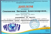 Получены дипломы лауреатов и победителей за участие педагогов во Всероссийском конкурсе "Развивающая среда образовательного учреждения". Конкурс был организован "Экспертно-методическим центром" г. Чебоксары.