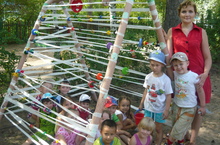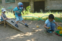 Огромное значение для развития детей имеет игровая среда прогулочных участков, особенно летом, когда большая часть времени проходит на открытом воздухе. Оформление площадки, выносной материал, песочный дворик, декоративные растения, оборудование для сюжетных игр, - всё это помогает организовать прогулку качественно. Такой "домик", соответствующий принципу "открытости-закрытости", мотивирует детей на развитие разнообразных ролевых игр.