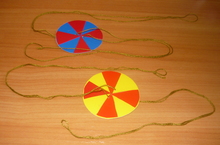 Фурчалка - забава с незапамятных времён. Давайте поиграем! Раскрутив нитку с цветным кругом (пуговицей), осторожно растягиваем в стороны, слегка ослабляем и снова растягиваем. Обучение этому навыку требует времени, терпения, сосредоточенности. Если мы всё проделаем правильно, получим интересный эффект!