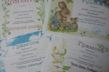 Даже летом педагоги, дети и родители принимают участие во всевозможных конкурсах. "Мы семья", "Хохломская роспись", "Милой мамочки портрет", "Этот день победы", - номинации конкурса рисунков и фотографий Российского образовательного центра "Дарование". Воспитанники рисовали портреты своих мам, отражали впечатления от празднования "Дня Победы", выписывали декоративные хохломские завитки. В итоге - грамоты победителям и участникам конкурса! Поздравляем!