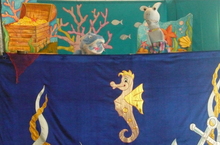 Артисты театра "Алёнкины сказки" стали нашими постоянными гостями. У них интересный и доступный дошкольникам репертуар. Вопросы воспитания подаются в лёгкой и непринуждённой форме. Сегодня мы смотрели сказку "Коля акулёнок - невоспитанный рыбёнок". В пьесе обсуждались проблемы послушания. Каждая встреча с артистами становится возможностью и основой для этических бесед с детьми.
