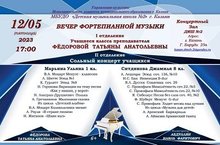 Вечер фортепианной музыки учащихся преподавателя ФЁДОРОВОЙ ТАТЬЯНЫ АНАТОЛЬЕВНЫ. 13.05.2023