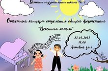 23 марта в концертном зале музыкальной школы состоялся отчётный концерт отделения общего фортепиано, в котором выступили учащиеся преподавателей Видеман С. Л., Гималетдиновой Н. Р., Анкудиновой Т. В., Сабитовой Г. В., Матулис С. В., Гарифзяновой Д. С., Загайновой Г. Н., Калинкиной Р. М., Баленковой М. Е. В концерте прозвучали произведения русских, советских и зарубежных композиторов. Были представлены как сольные, так ансамблевые номера.Поздравляем всех участников с успешным выступлением.Отдельная благодарность ведущей концерта ,Регине Маратовне Калинкиной, за прекрасный сценарий.