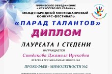 Поздравляем Лауреатов Международного многожанрового конкурс-фестиваля "Парад талантов" 15.06.2022