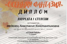 Поздравляем Лауреат I степени V Международного конкурса исполнительского мастерства Allegro. Vivo. Presto SFORZANDO 14.11.2021