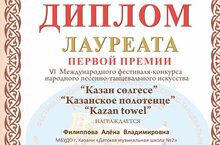 Поздравляем лауреатов первой премии VI Международного фестиваля-конкурса народного песенного-танцевального искусства «Казанское полотенце» 30.08.2021