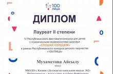ПОЗДРАВЛЯЕМ ЛАУРЕАТА IV РЕСПУБЛИКАНСКОГО ФЕСТИВАЛЯ-КОНКУРСА "СЛУШАЯ СЕРДЦЕМ" В РАМКАХ РЕСПУБЛИКАНСКОГО КОНКУРСА ДЕТСКОГО ТВОРЧЕСТВА "100//ЛИЦА" 10.12.2020