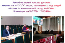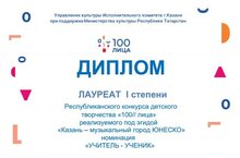Республиканский конкурс детского творчества «100// лица», реализуемого под эгидой «Казань – музыкальный город ЮНЕСКО». Номинация «УЧИТЕЛЬ - УЧЕНИК» 26.10.2020